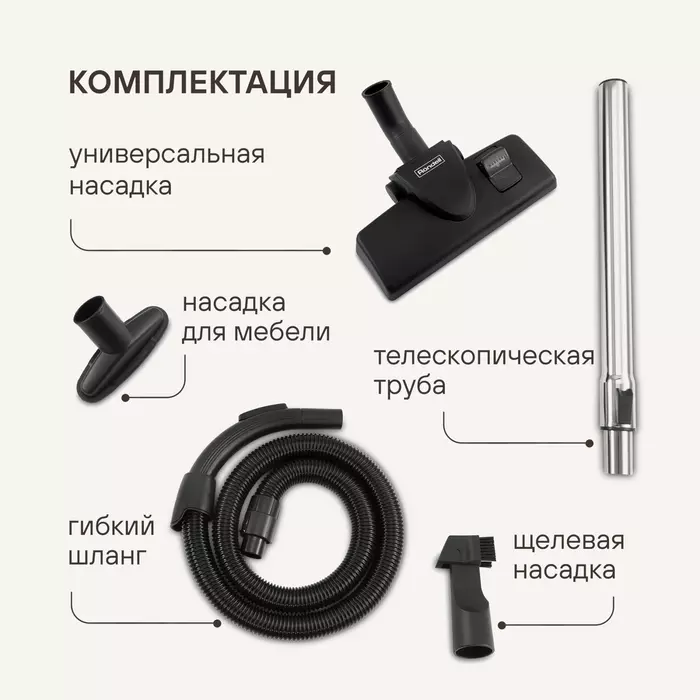 | Аксессуары в комплекте | насадка для мягкой мебели, насадка для пола и ковров, щелевая насадка |