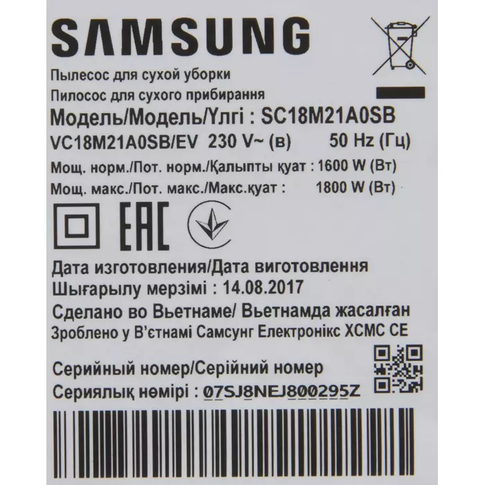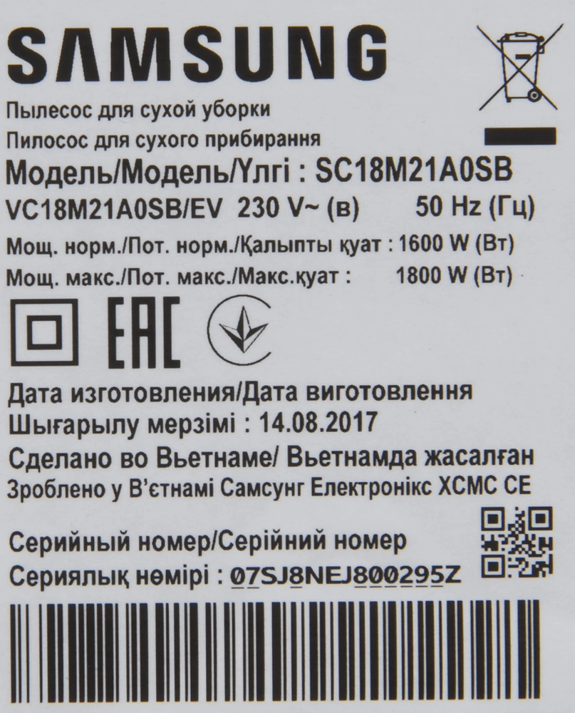 | Аксессуары в комплекте | насадка для пола и ковров, щелевая насадка |