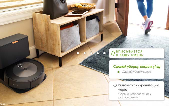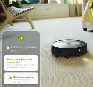 Робот-пылесос Roomba® j7+ изучает, как вы обычно делаете уборку, и автоматически предлагает персональные рекомендации по программированию графика уборки с учетом даже таких аспектов, как периоды, когда нужно делать уборку чаще, например во время линьки домашних животных или в период аллергии.