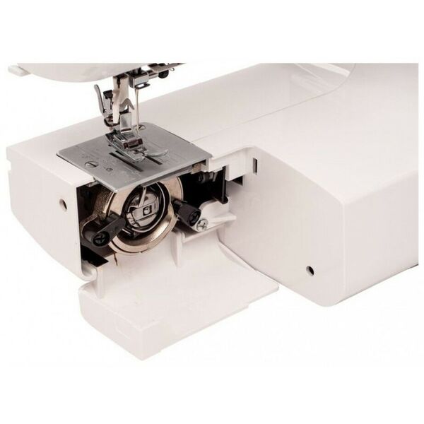 - Особенности конструкции: нитевдеватель, отсек для аксессуаров, подсветка, рукавная платформа