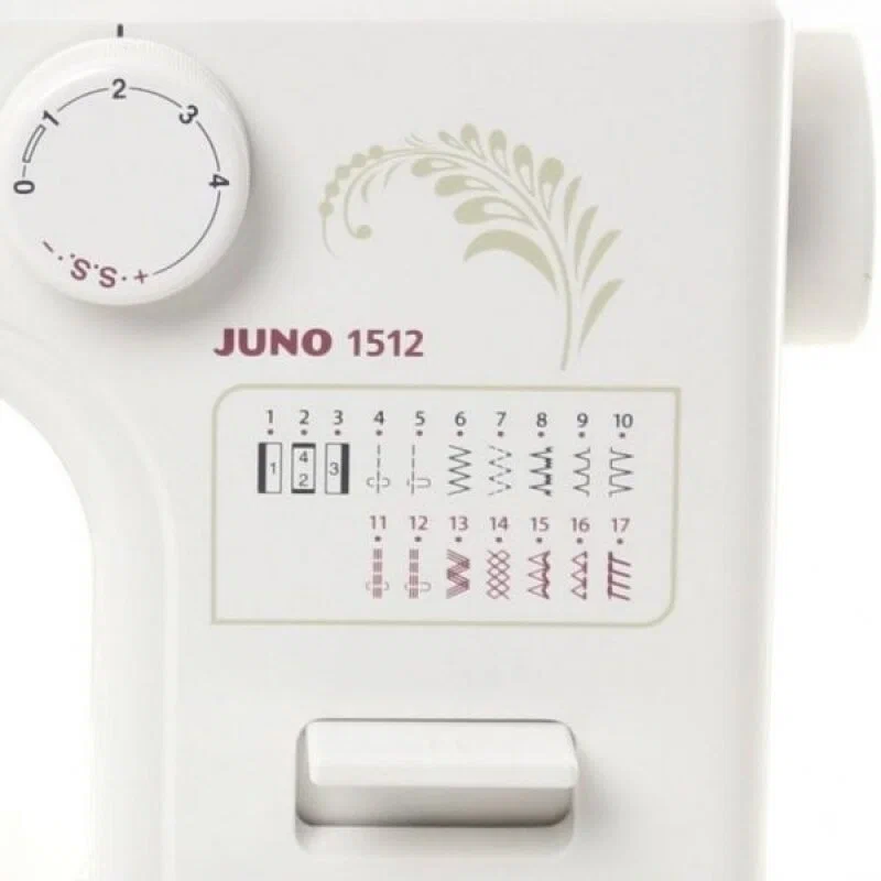 Швейная машина Janome Juno 1512 / 2212 с величайшим функционалом окажется незаменимой техникой для опытных портних и порадует элементарной простотой, в отношении эксплуатации, начинающих швей. Техника имеет своей отличительной чертой низкую долю энергопотребления (60 Вт) и вес, равный 7 кг. Зубчики машины, находящиеся под игольной пластиной (иное наименование – нижний транспортёр), обладают 5 сегментами и 3 полосами. Рабочая поверхность швейной техники с пластиковым корпусом освещается при помощи лампы накаливания. В качестве обработки функционирующих механизмов Janome Juno 1512 показано использовать силиконовый тип смазочных материалов.