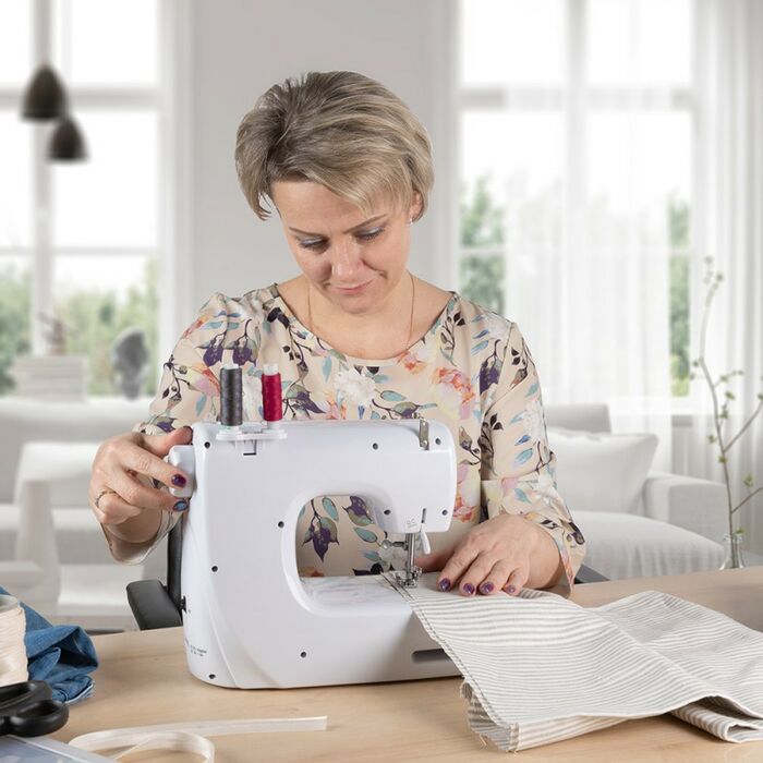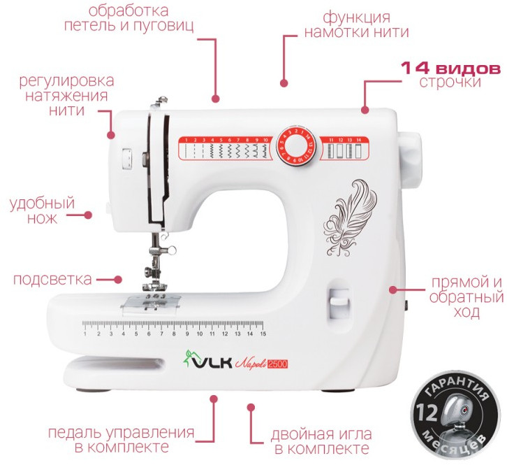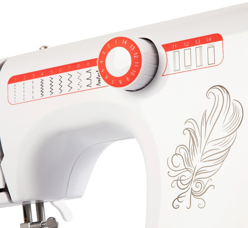 - 14 видов строчки, в том числе обработка петли для пуговицы