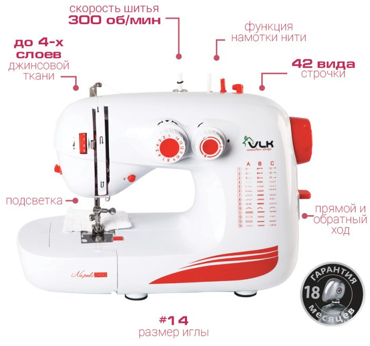 - Скорость шитья: 300 об.мин.