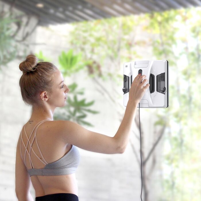 | Особенности | инверторный двигатель Nidec(пр-во Япония); подходит для любой толщины стекла; программа интеллектуальной очистки AI-Technology; два ультразвуковых разбрызгивателя Ultrasonic Spray; встроенный ИБП; приспособлен для использования на бескаркасных окнах; чистящие салфетки из микрофибры и др. |
