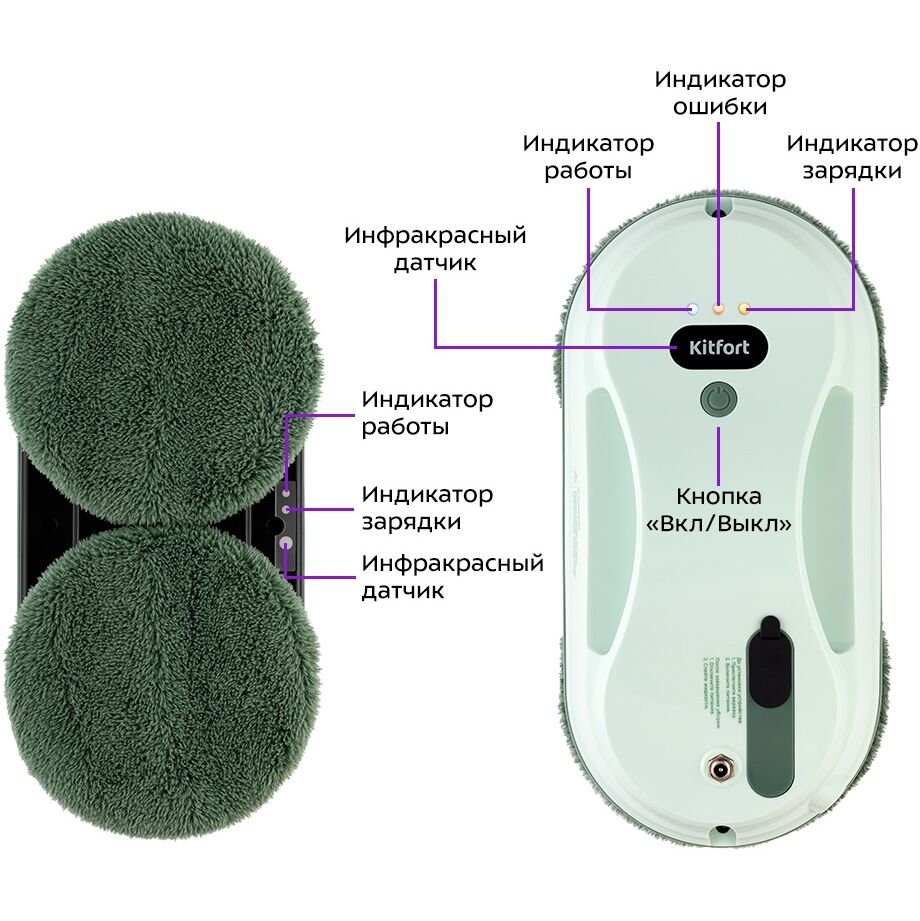 Робот Kitfort КТ-5189 предназначен для мытья стёкол изнутри и снаружи, кафельных и зеркальных покрытий в жилых домах и офисах. Робот оснащён вентилятором, благодаря которому создаётся разрежение, и он надёжно удерживается на вертикальной поверхности.