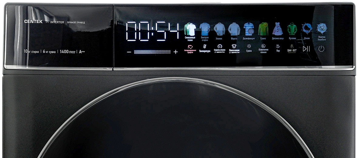 Смешанные ткани, Быстрая стирка, Хлопок, Шерсть, Дезинфекция, Сушка, Детские вещи, Пуховик, Отжим, Очистка барабана, Очистка сушильного канала, SMART