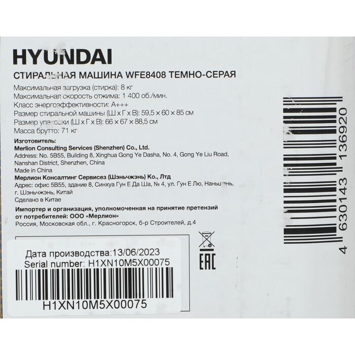 Наличие товара Hyundai WFE8408