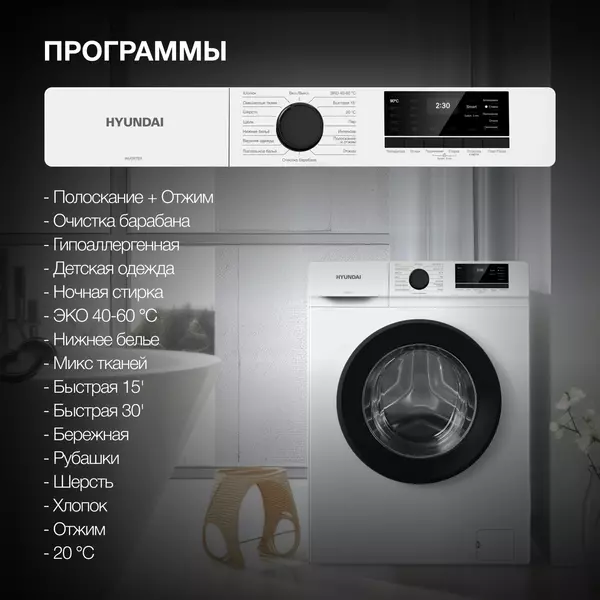 Стиральная машина Hyundai WME6008 класс: A++, загр.фронтальная, макс.:6кг, белый