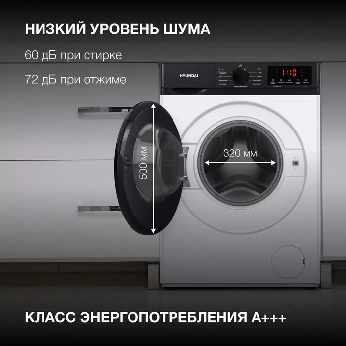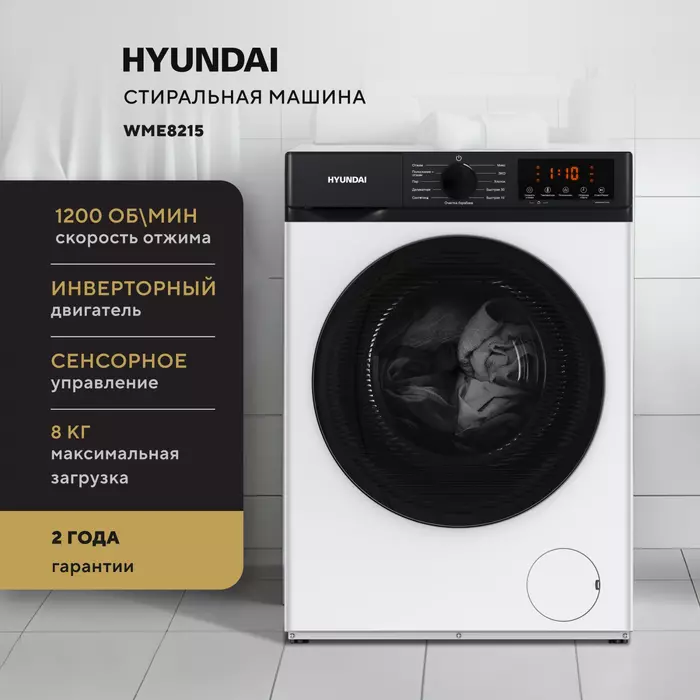 | Комплектация | Стиральная машина Hyundai; Гарантийный талон; Руководство пользователя |