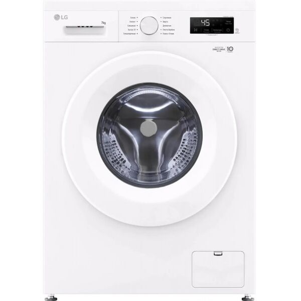 Стиральная машина LG F2Y1NS3W 6 кг, цвет белый, тип загрузки фронтальная, инверторный двигатель, подача пара, дисплей, класс потребления электроэнергии A, скорость вращения 1200 об/мин, защита от протечек воды частичная, защита от детей