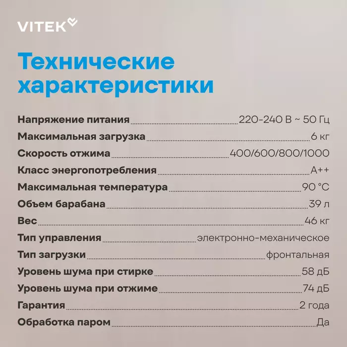| Программы | Eco, постельное белье, пятновыведение, хлопок, шелк, шерсть |