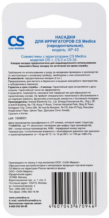 AP-43 пародонтальные 2 шт. для ирригаторов OS-1, CS-2, CS-32