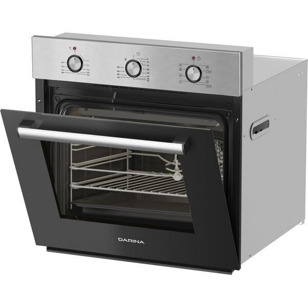 | Особенности | Встраиваемый электрический шкаф с фасадом из нержавеющей стали, 9 режимов работы, тангенциальное охлаждение, механический таймер, подсветка, конвектор, гриль, вертел, терморегулятор. |