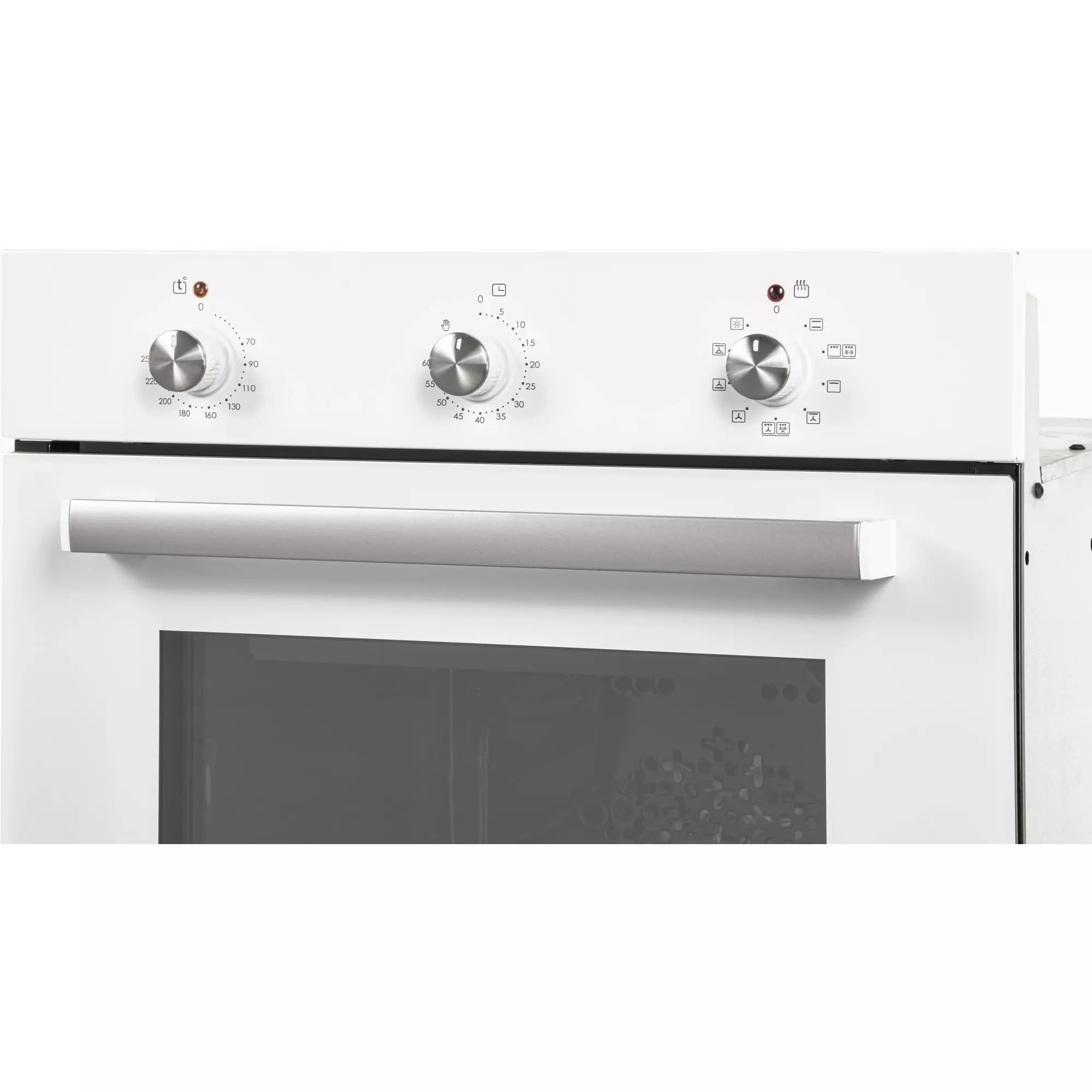 | Особенности | Встраиваемый электрический шкаф с металлическим фасадом белого цвета, 9 режимов работы, тангенциальное охлаждение, механический таймер, подсветка, конвектор, гриль, терморегулятор. |