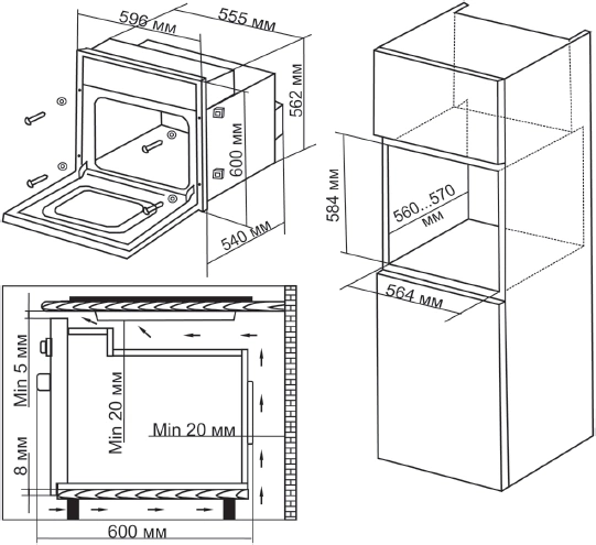 | Режимы духовки | подсветка, верхний и нижний нагрев, верхний и нижний нагрев + конвекция, нижний нагрев, гриль, гриль + конвекция, разморозка, нижний нагрев + конвекция, верхний нагрев + конвекция |