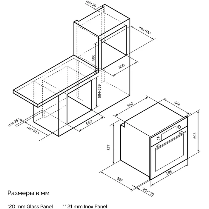 | Размеры для встраивания | 56x55x60см |