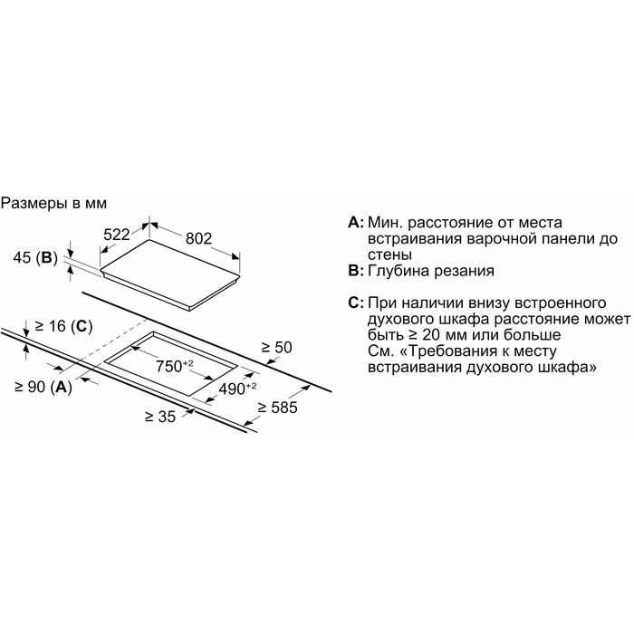 | Размеры для встраивания | 750x490мм |