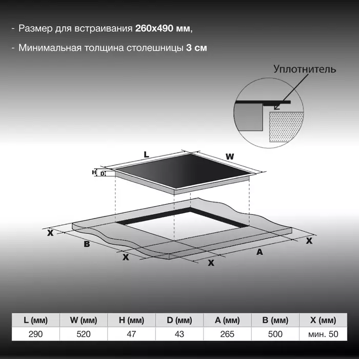 | Установка рабочей поверхности | независимая |
