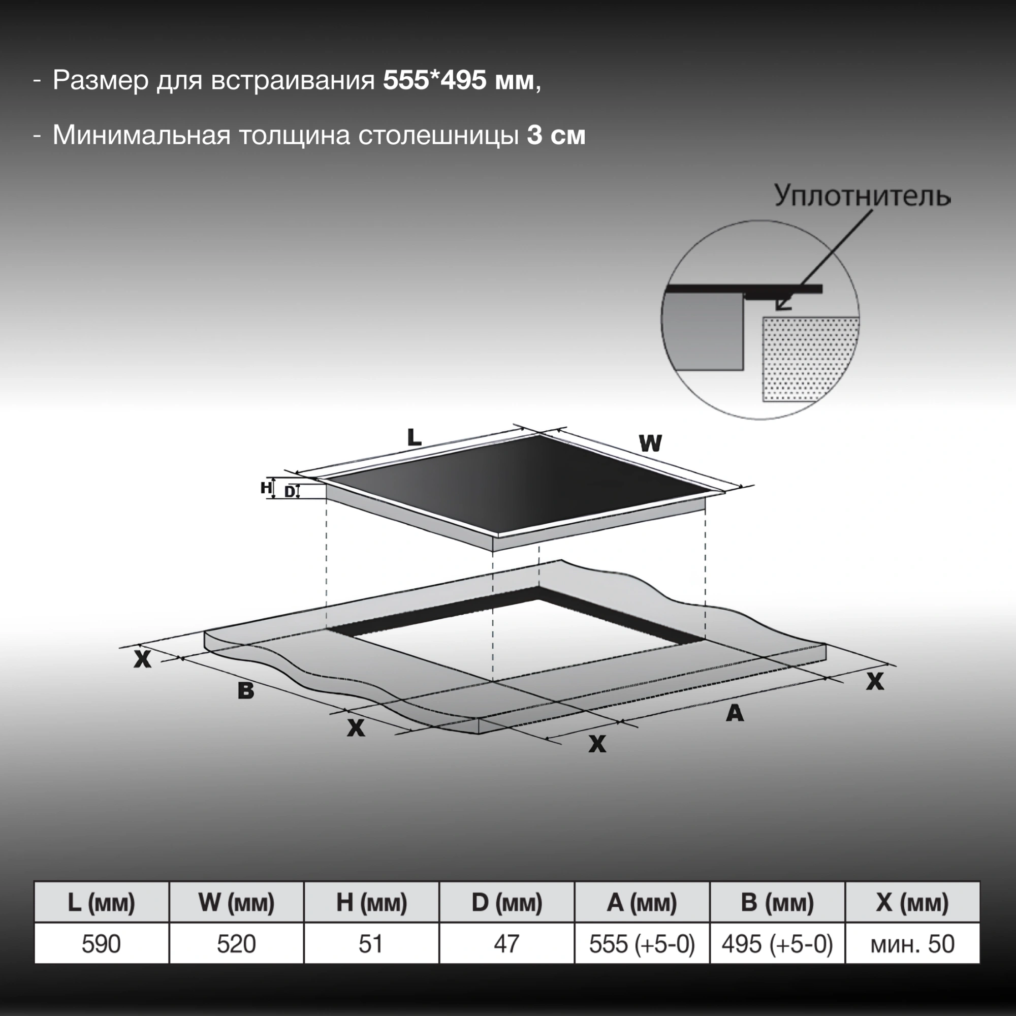 | Размеры для встраивания | 495x555 |