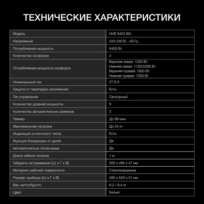 | Материал рабочей поверхности | стеклокерамика |