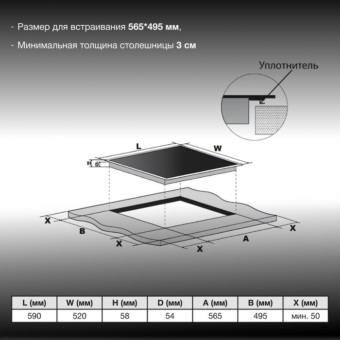 Характеристики Основные характеристики Тип Индукционная варочная поверхность Управление электронное Тип переключателей сенсорные,...