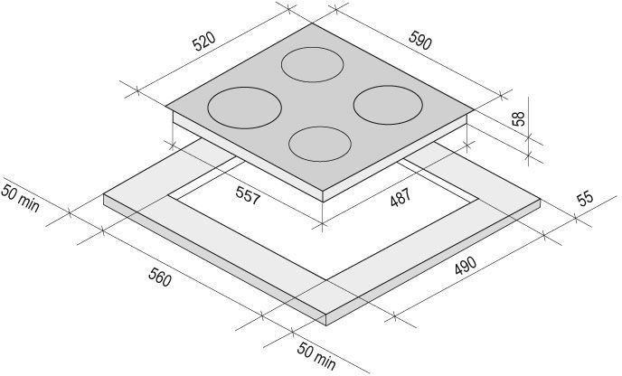 | Мощность (левой дальней конфорки) | 1.4 кВт |