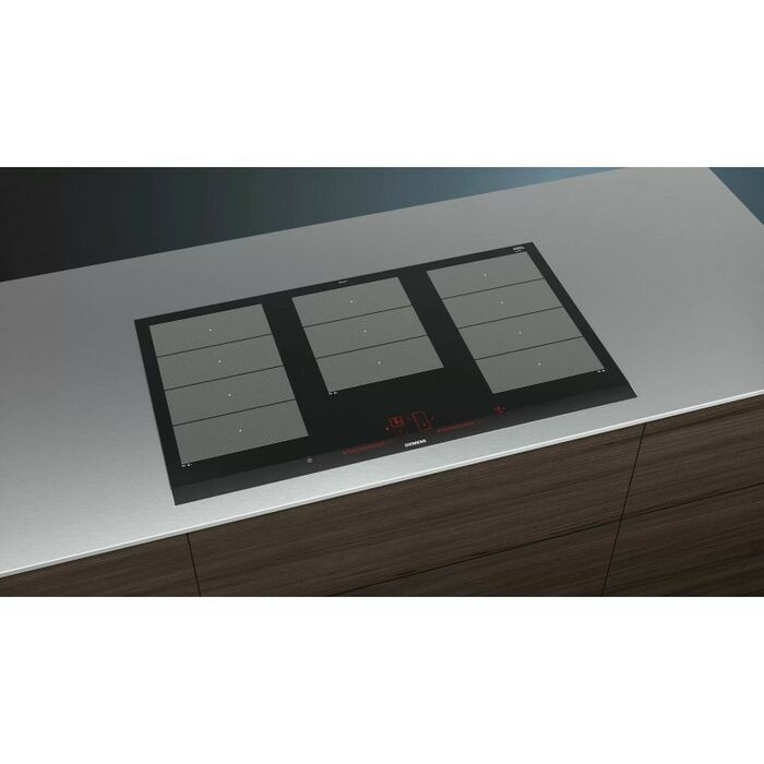 - Встраиваемая индукционная варочная панель SIEMENS EX975LXC1E iQ700 оборудована 5 зонами готовки, мощность которых можно регулировать по 17 уровням