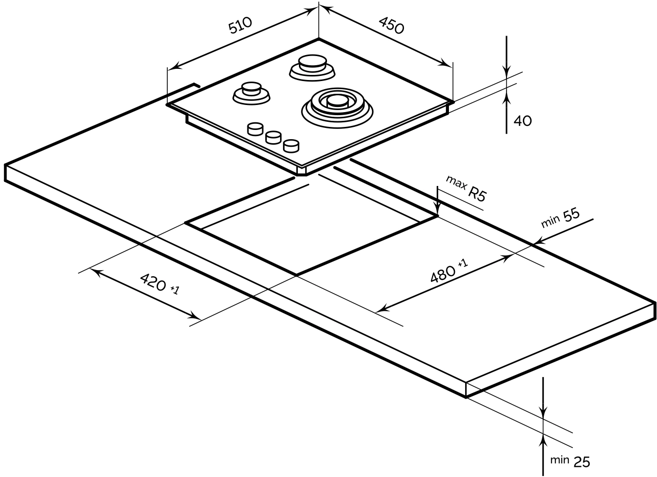 | Суммарная мощность газовых конфорок | 6.25 Вт |