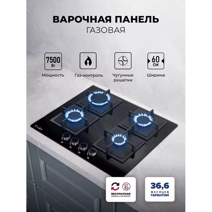 | Суммарная мощность газовых конфорок | 7.5 Вт |