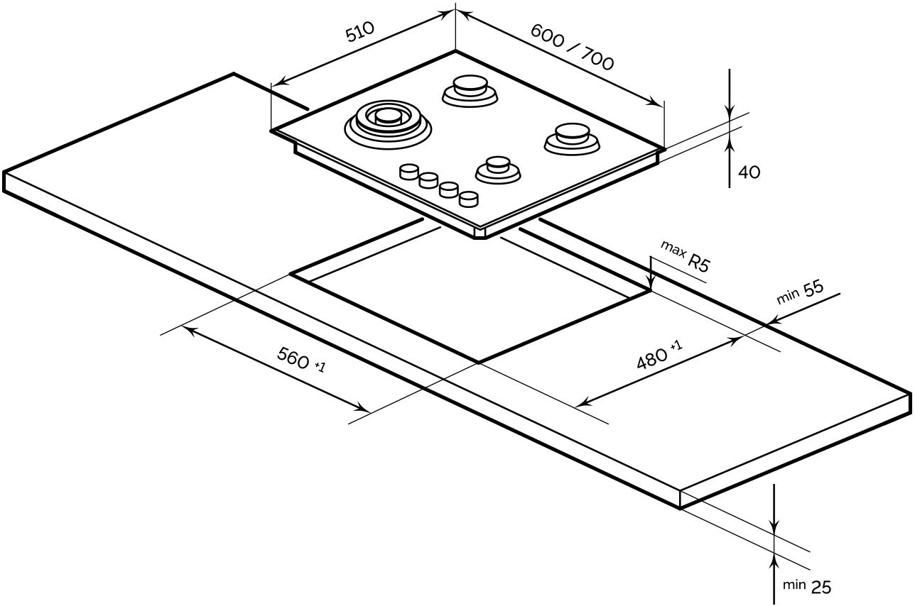 | Установка рабочей поверхности | независимая |