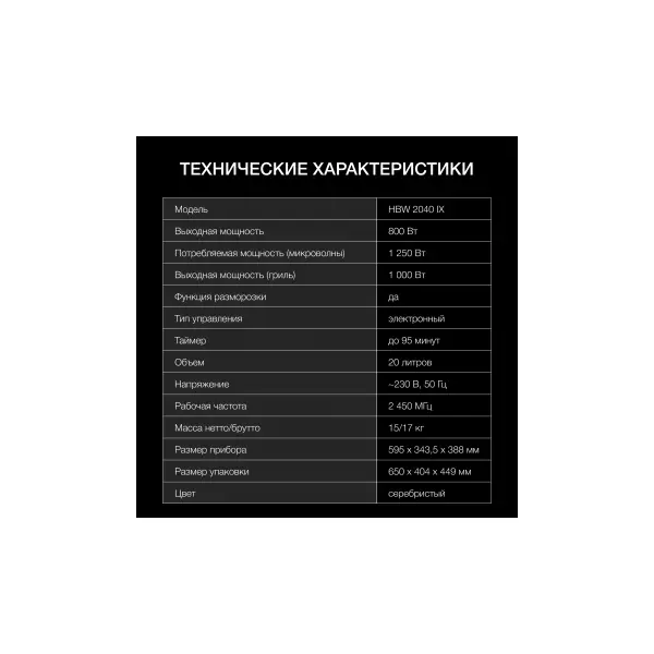 | Режимы | автоматическая разморозка, автоматический разогрев, гриль |