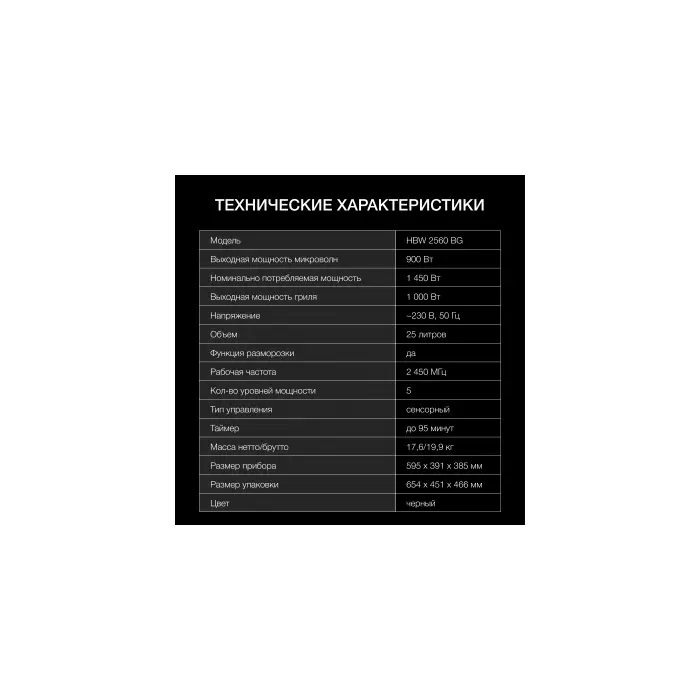 | Режимы | автоматическая разморозка, автоматический разогрев, гриль |
