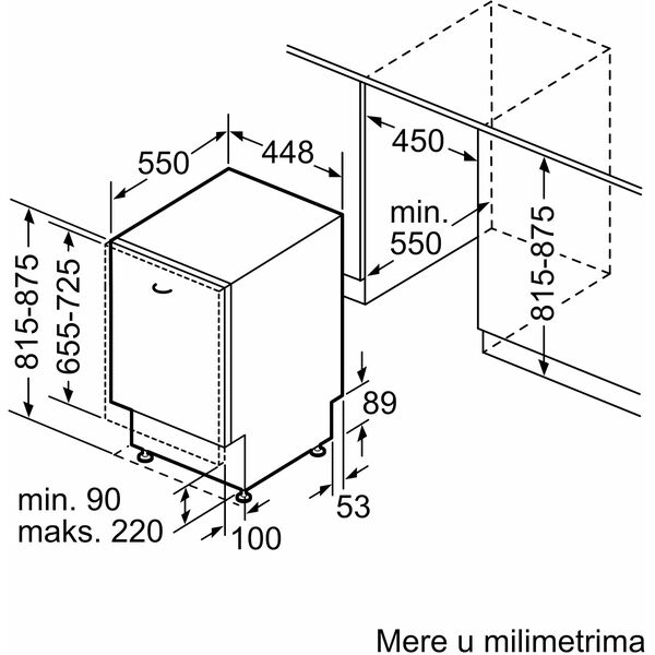 | Размеры для встраивания | 87.5x45x55см |