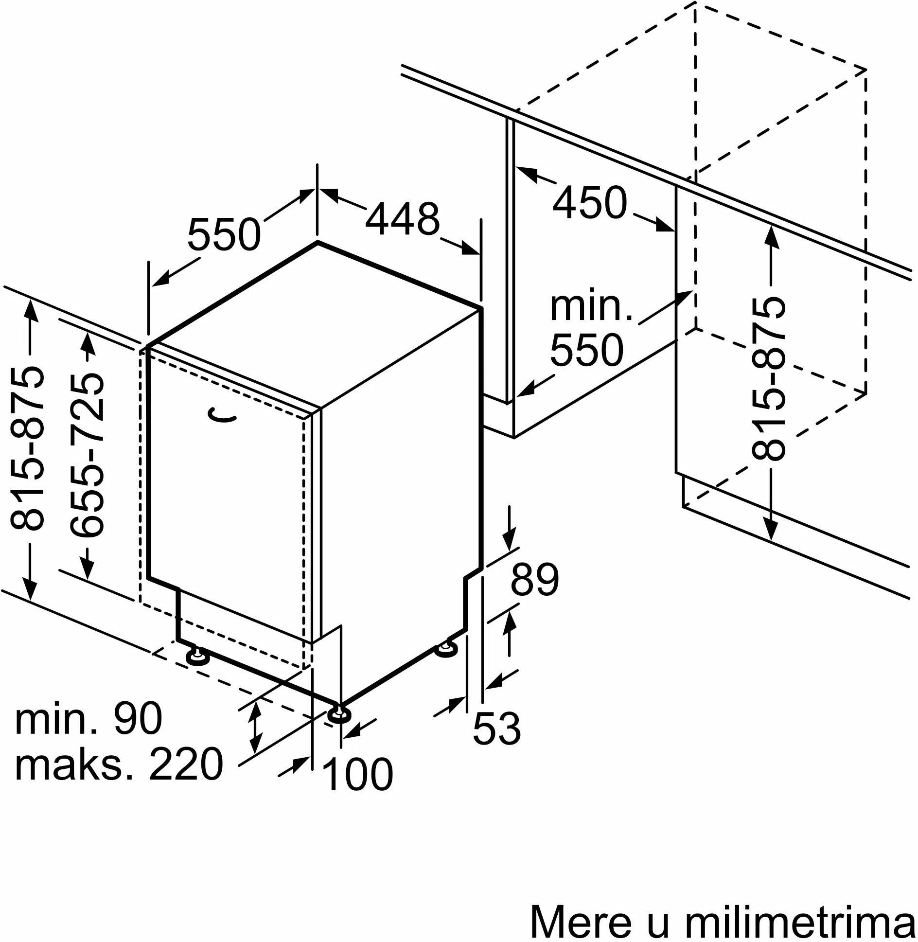 | Размеры для встраивания | 87.5x45x55см |