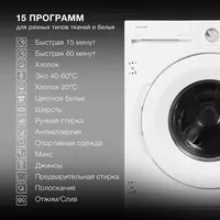 | Программы | ECO, джинсы, пуховые изделия, синтетика, спорт, хлопок, шелк, шерсть |