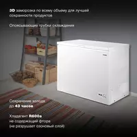 Характеристики Основные характеристики Тип Морозильный ларь Полезный объем 249 л Общий объем 279 л Потребление энергии 347 кВт*ч/год...