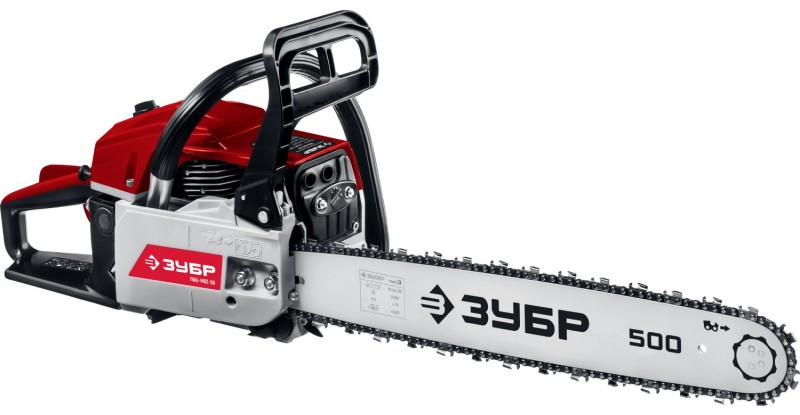 - Идеальный вариант для пиления досок, бруса, стволов различных пород дерева на дачном участке. В отличие от электрической, бензиновая пила оснащена более мощным двигателем, безопасна в отношении поражения электрическим током, может работать в любую погоду и в любом месте. Функции легкого запуска, автоматической смазки цепи и эффективная антивибрационная защита делают пилу легкой в обращении и комфортной в работе. Двойной тормоз цепи, приводимый в действие при откидывании защитного щитка или при отпускании клавиши блокировки на рукоятке, а также встроенный цепеуловитель и металлический упор делают пилу безопасной в применении. Большая удельная мощность, высокое качество применяемых материалов и изготовления, обеспечивающие увеличенный ресурс, делают бензиновую пилу ЗУБР Вашим лучшим помощником. Обратите внимание, что рекомендуемая пильная гарнитура ЗУБР устанавливается только комплектом