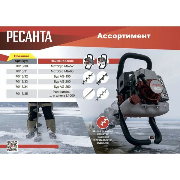 Бензиновый Мотобур РЕСАНТА МБ 52 - это удобный инструмент для работы с грунтом и льдом, например, в строительстве или зимней рыбалке.