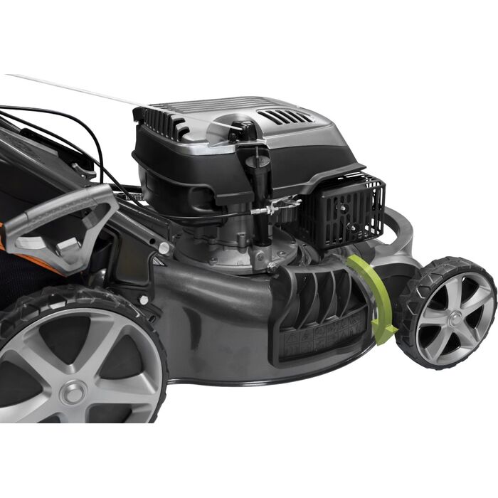 | Особенности | Три режима стрижки травы. Индикатор накопления травосборника. Система самоочистки AutoWash. Система измельчения травы для удобрения почвы. Вместительный травосборник 65 л. Центральный рычаг регулировки высоты скашивания. Регулируемая складная рукоятка. Прочная стальная дека. |