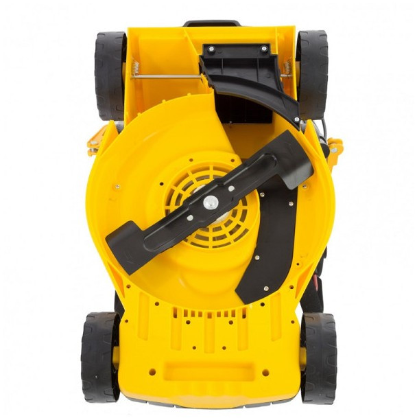 - Скоба-выключатель, расположенная на рукоятке, позволяет более удобно управлять газонокосилкой, чем традиционный рычаг.