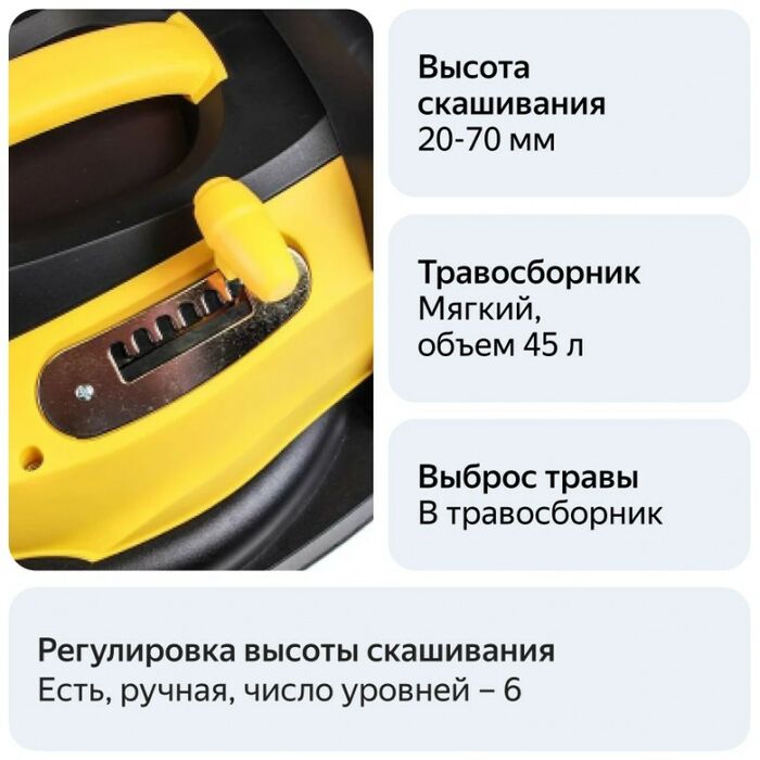 - Дополнительные функции: регулировка высоты скашивания