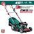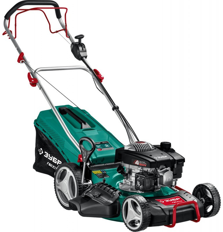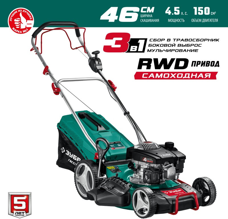 - Задние колеса увеличенного диаметра и подшипники на всех колесах облегчают нагрузку при передвижении газонокосилки. А привод колес от двигателя полнос
