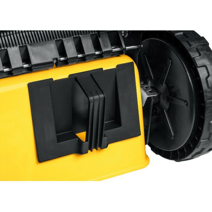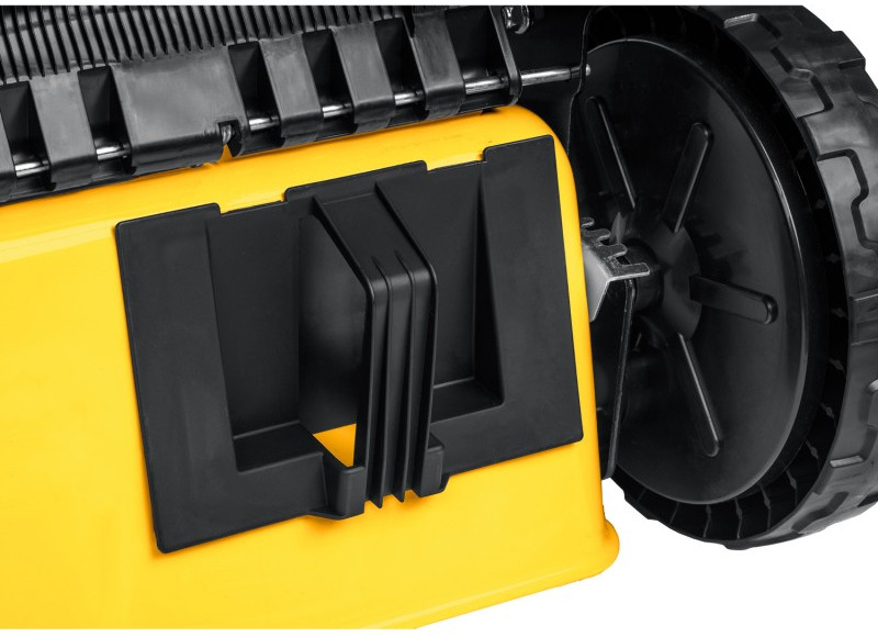 - Задние колеса увеличенного диаметра и подшипники на всех колесах облегчают нагрузку при передвижении газонокосилки. А привод колес от двигателя полнос