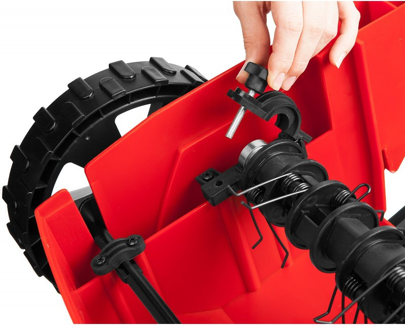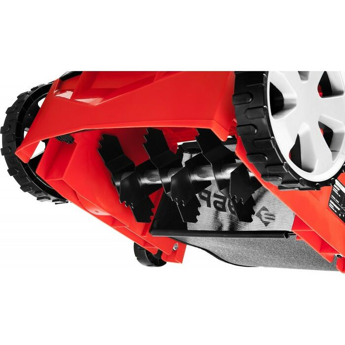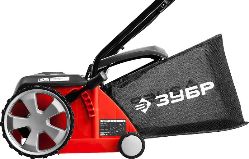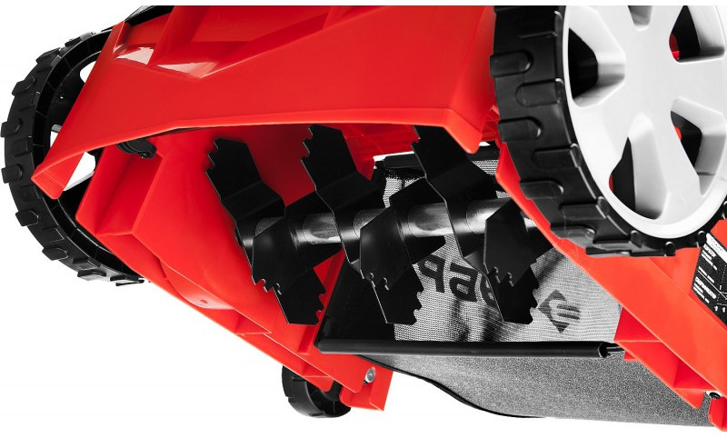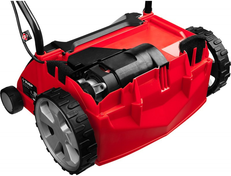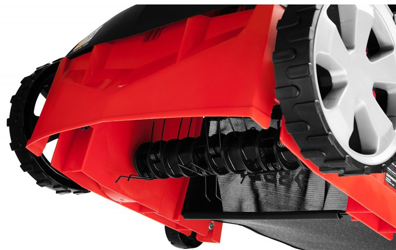 - Облегченные колеса большого диаметра и эргономичная рукоятка облегчают перемещение изделия по газону