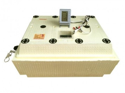 - Автопереворот, большой жидкокристаллический дисплей, простое кнопочное меню, показания всех главных параметров инкубации: точное поддержание температуры, измерение влажности, подсчет дней инкубации, звуковое оповещение, отображение источника питания, графическое отображение работы нагревателей, индикатор зарядка аккумуляторной батареи, новая конструкция водяных нагревателей