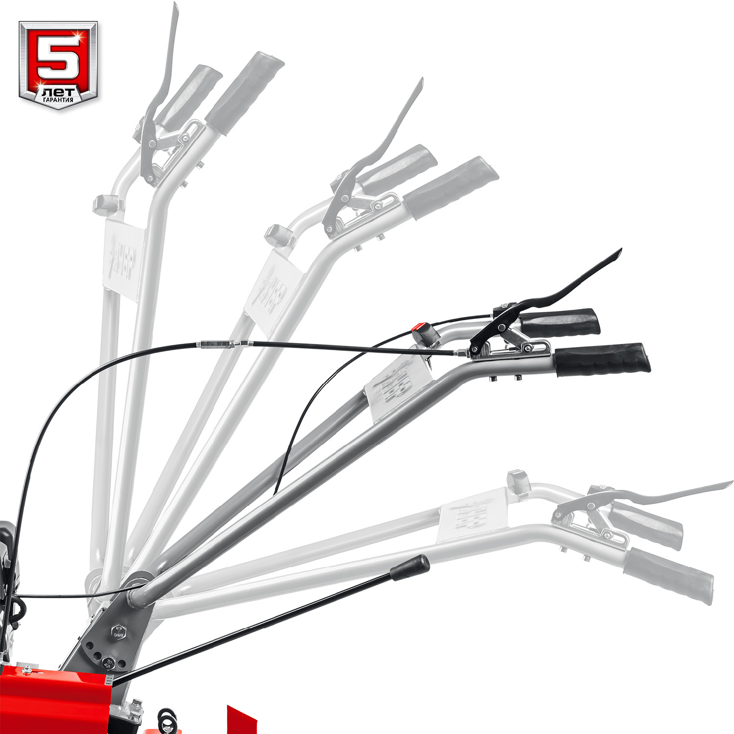 - Рукоять мотоблока с возможностью регулировки по вертикали делает управление более комфортным