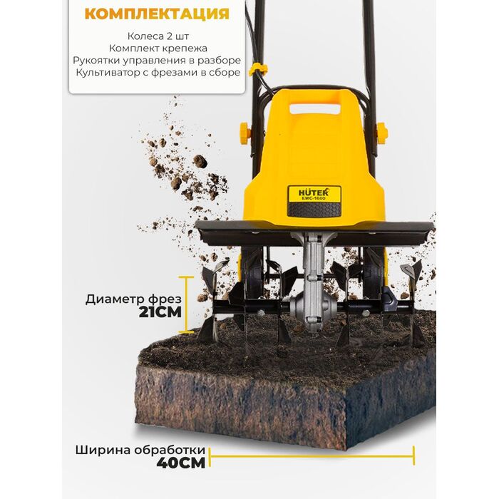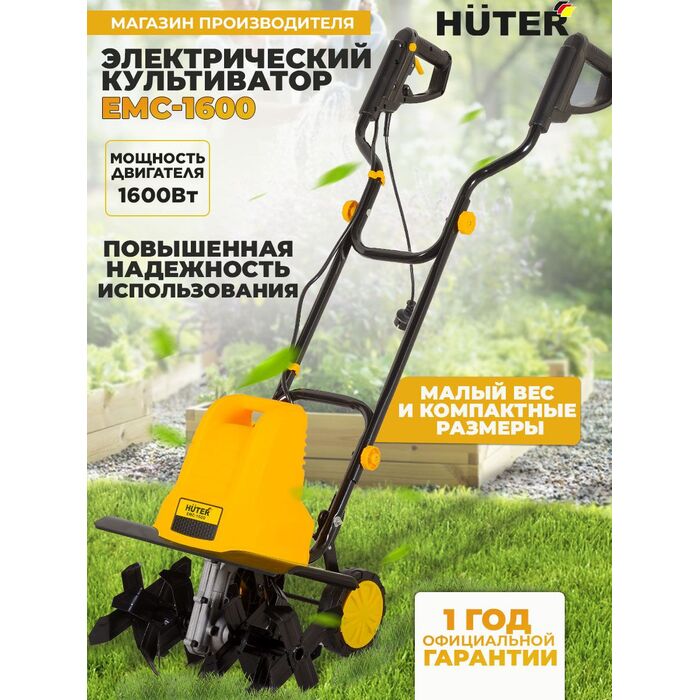 Культиватор электрический HUTER EMC-1600 используется для обработки почвы методом культивации, то есть её рыхления без переворота почвы, выравнивания и т.д. С таким агрегатом можно получить хорошие результаты на дачных участках, ограниченных территориях, междурядьях, на клумбах и возле деревьев. Культиватор укомплектован электрическим синхронным щеточным двигателем и работает от обычной сети 220 В.