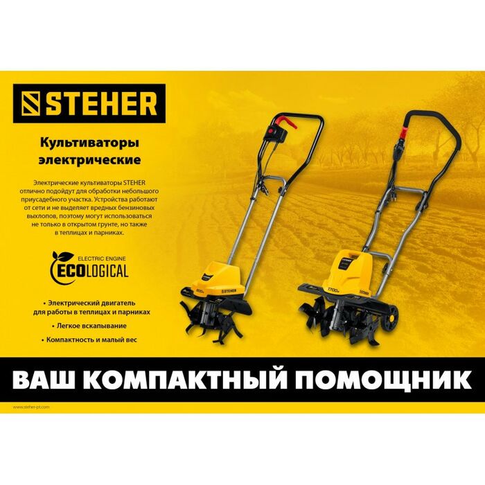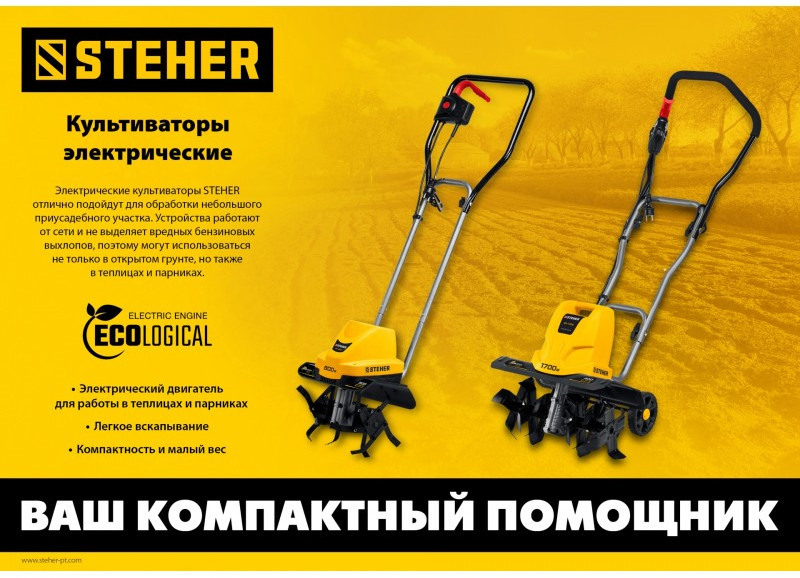 Манёвренный культиватор с синхронным двигателем мощностью 1700 Вт используется для рыхления и культивации почвы на небольшом участках, парниках и теплицах. Оснащен металлическими фрезами с шириной захвата 40 см и обрабатывает почву на глубину до 20 см.