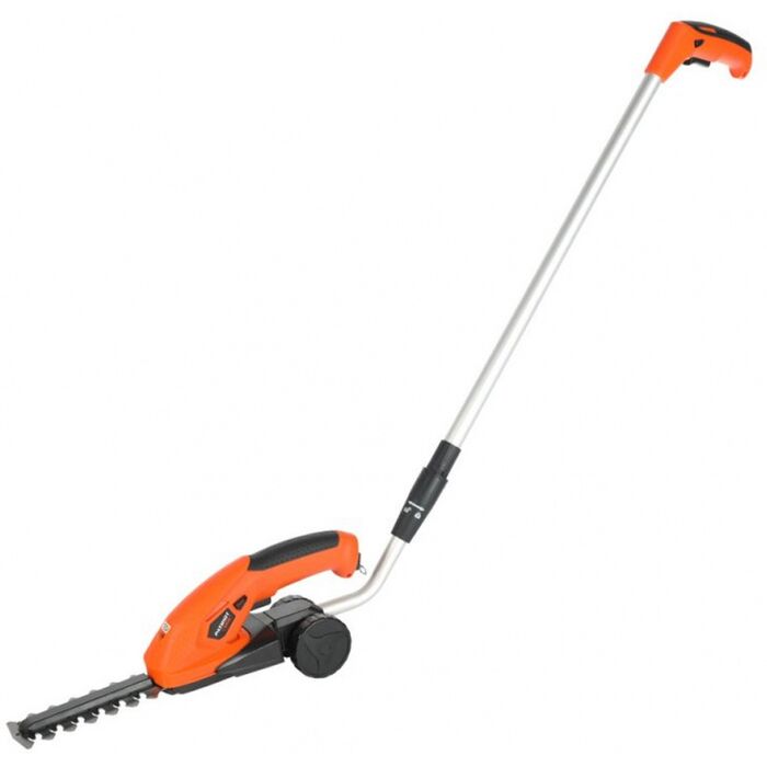 | Особенности | Заряжается от любого адаптера питания для смартфона через порт USB. Длина ручки: 80-120см. Легкий и тихий аккумуляторный кусторез CH 360 работает от аккумуляторной батареи и не требует подкдючения к сети. Предназначен для стрижки и подравнивания кустов на приусадебном участке. |