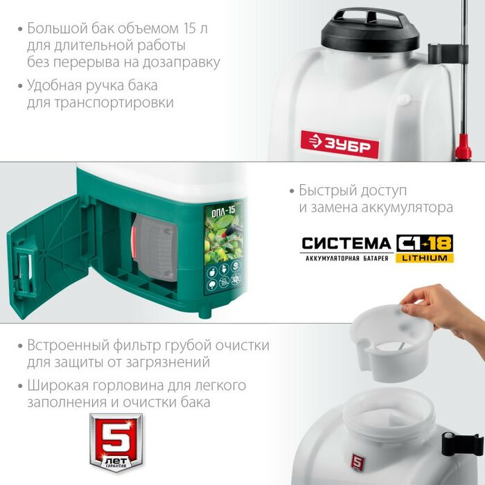 - Ранцевый аккумуляторный распылитель отличается эффективностью, мобильностью, экологичностью. Бережно орошает растения. Подходит для дезинфекции, мытья окон и стен. Работает от Li-Ion аккумулятора 18В. За счет наличия ремней обеспечивается удобство переноски на спине.